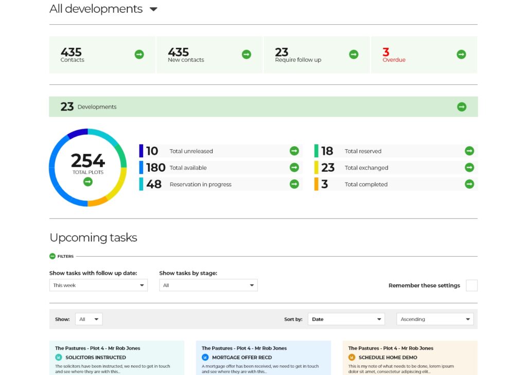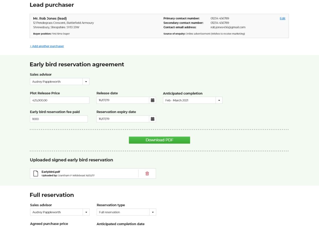 Housebuilder Pro allows you to track the progress of your buyers, so you can efficiently guide them through the sales process from reservation to completion. Complete and store all of your reservation forms live in the system, whether it be the Early Bird, Full Reservation or Customer checklist. With Housebuilder Pro you can track all of your sales activities, create tasks as well as filling out a handover certificate to move the property into its warranty period.